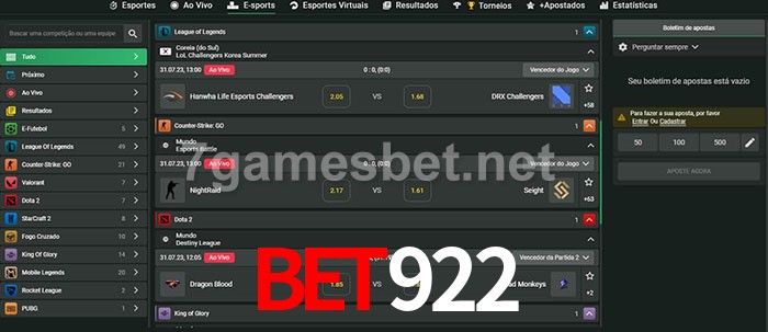 A aposta Bet922 oferece aos jogadores a experiência mais conveniente de apostas em eSports!